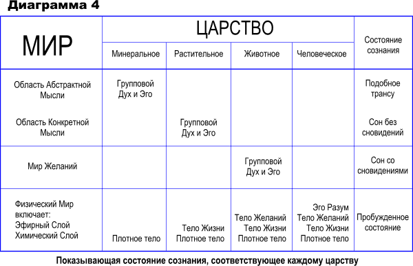 Голубым цветом выделены 7 ПЛАНОВ солнечной системы, из материи которых построены оболочки ДУХА, ДУШИ и ЛИЧНОСТИ человека. (Они были ранее показаны в упрощенном виде в таблице 1). Розовым цветом выделены 7 подпланов ФИЗИЧЕСКОГО ПЛАНА солнечной системы, из которых ученым пока доступны для изучения лишь 4 самые плотные. Остается добавить, что для Солнечного Логоса даже самые тончайшие с точки зрения человека огненные миры являются всего лишь самой грубой материей, из которой построена его самая плотная оболочка.