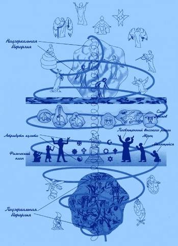 Символическое изображение Сущностей Тонкого плана, взаимодействующих с Человечеством.